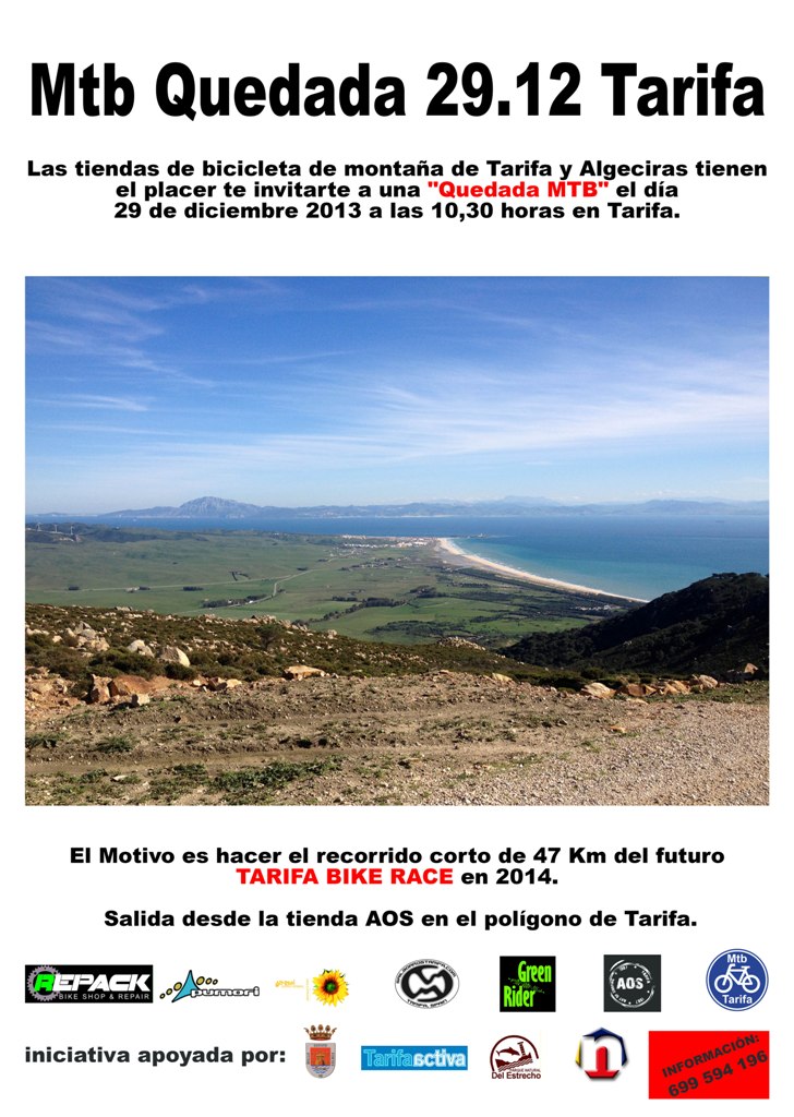 The mountain bike shops of Tarifa and Algeciras are pleased to invite you to a “Mtb Meeting” on the 29th of December 2013 at 10.30 am in Tarifa.