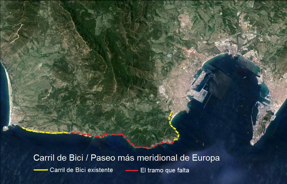 Nos gustaría llamar la atención sobre lo siguiente, El tramo que falta para completar la conexión entre Getares y Guadalemsi por la costa. Una vieja idea aún sin realizar.