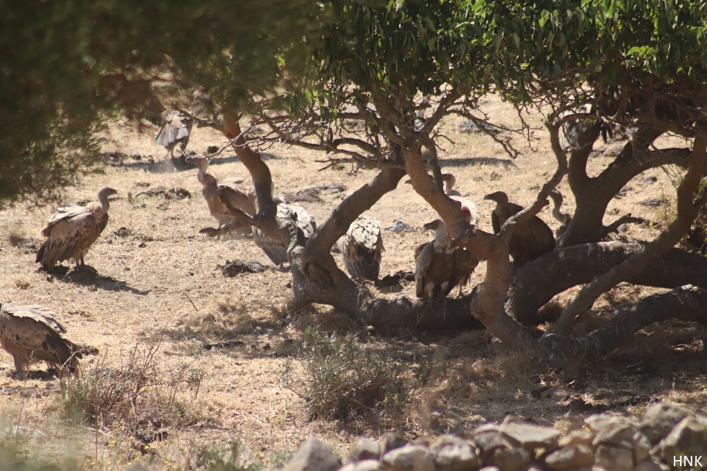 Sometimes you hear sounds behind the bushes, you put the mountain bike against a tree to investigate very quietly and then you come across this scene … A group of Griffon Vultures