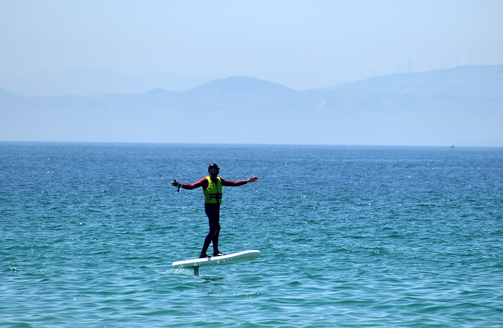 At the bottom of the DH Buddha trail is Valdevaqueros beach, the best kite spot in Tarifa, where Adrenalin Kite Area is located. Besides kitegear rental and lessons they offer various other new water sports such as fliteboarding and wingfoiling, all sports to have great times in the healing ocean.